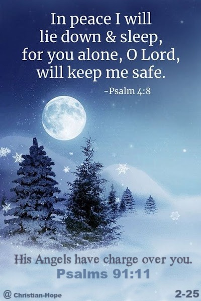 I've always treasured the true story of David Livingstone in Africa. He'd been mark to be killed by a local tribe Leader who hated his Missionary Work there. They swore to kill him... But Livingstone, knowing they were close by ready to pounce on his camp... wrote in His diary... "Lord Your Word says I should both lay me down Psalms 4:8... and you are not a liar... and I will now sleep knowing you have me in your care." Livingstone slept... and slept soundly without any problems.